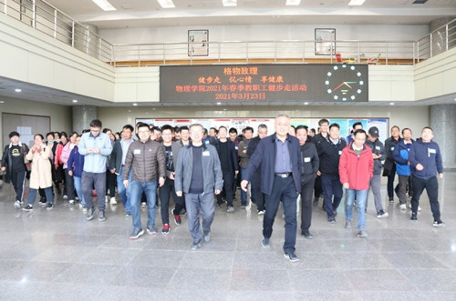 为了丰富教职工业余生活,提升教师队伍身体素质,促进良好健身习惯养成,增进同事间交流和友谊,展现学院良好精神风貌。3月23号下午,物理学院工会成功举办了 “格物致理,健步走,悦心情,享健康”教职工春季健步走活动。