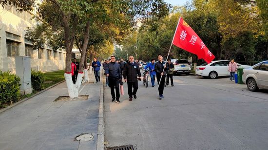 为倡导低碳绿色出行理念,营造健身交流氛围,12月14日下午,物理学院工会组织教职工在西校区校园开展健步走活动,学院100余名教职员工参加了本次活动。