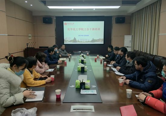 为持续深化党史学习教育,进一步为师生办实事、办好事,化学化工学院工会于12月30日上午在化学北楼N114会议室召开工会干部培训会,学院全体工会委员、13个工会小组长参会。