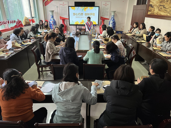 为了能精确响应女职工的兴趣爱好,营造欢乐、祥和的节日气氛,商学院分工会全体委员提前调研,精心策划。不仅充分准备了不织布、胸针、剪刀、镊子等工具,还邀请了美术学院张艳老师现场讲解各类手工包的制作方法。