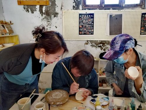 活动开始,陶艺老师首先向大家讲解了什么是陶艺、如何制作陶艺作品以及如何进行彩绘上釉烧窑的理论知识,并为大家演示了做胚、拉胚、上色等制作陶艺的步骤。在专业老师的指导下,大家兴趣盎然,发挥艺术想象力,随着泥土的旋转,用灵巧的手勾勒出了美丽的弧线,制作出一件件独具匠心的作品,整个陶艺室都充满着欢声笑语。