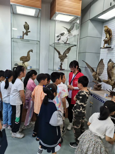 接下来,孩子们来到了鸟类展区。他们惊叹于展示柜中色彩斑斓的鸟类标本,仿佛看到了自然界中的翅膀各异的美丽生物。工作人员向他们介绍了不同鸟类的特点,如它们的栖息地、飞行能力等。孩子们纷纷举起手来,向工作人员提问,表达自己的好奇心和渴望了解更多的知识。