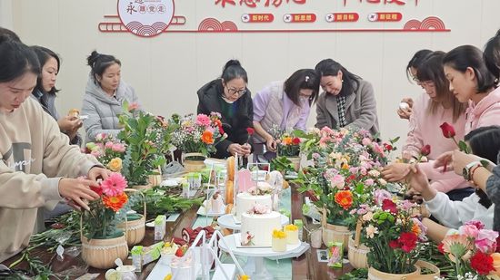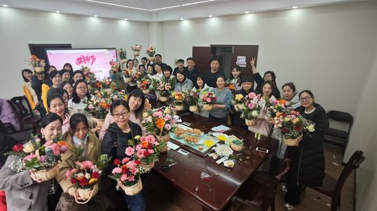 活动中,女教师们精心构思、认真修剪、尽情地发挥创作力,根据不同的色彩和形状,错落有致地将花材搭配在一起,变成了一件件具有艺术感、层次感的精美花艺作品,令人赏心悦目。女教师们看着自己亲手创作的花艺作品,感到满满的成就感与幸福感,脸上都洋溢着浪漫开心的笑容。活动最后大家一起进行了合影留恋。