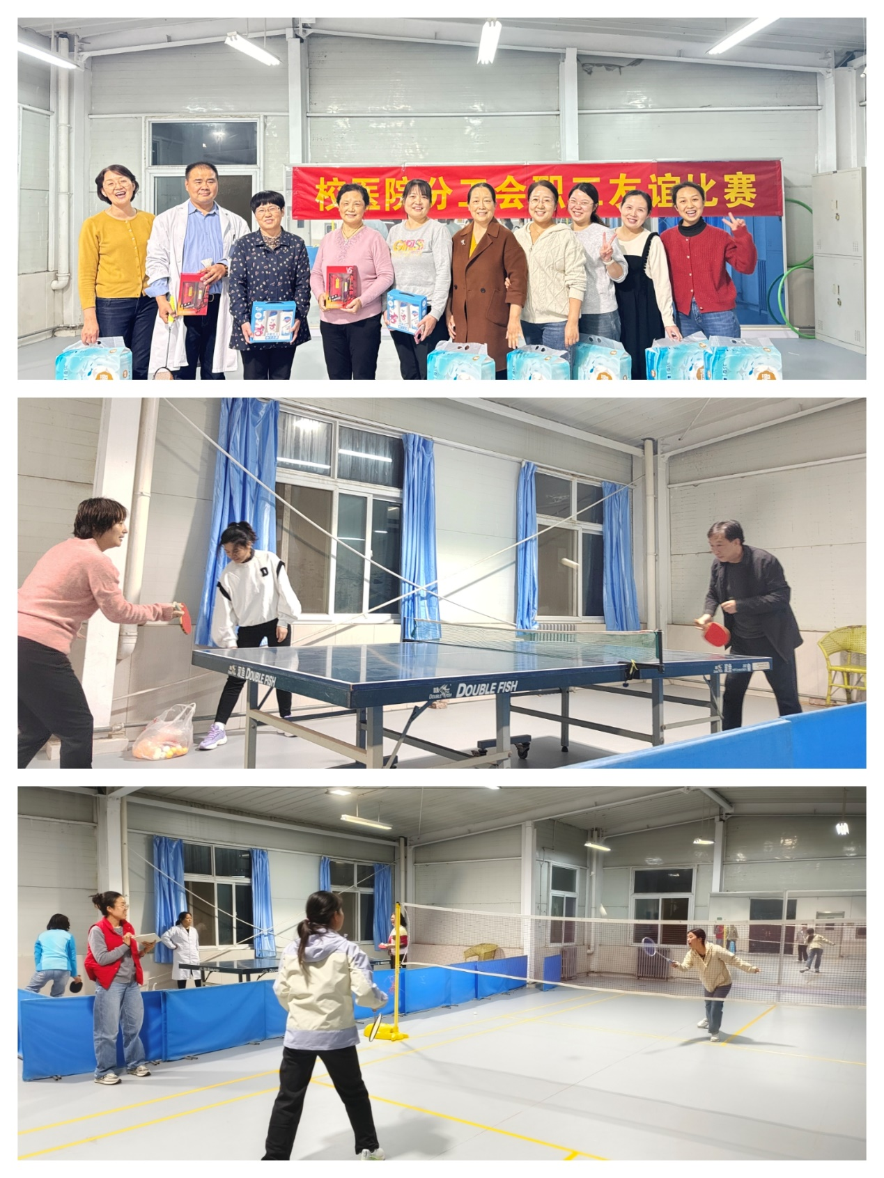 为丰富职工业余文化生活,增强职工健康体质,校医院工会于2024年10月30—11月1日,举办了职工羽毛球、乒乓球友谊比赛。本次比赛全体职工积极参与,在繁忙的工作之余,大家以球会友,展现出了昂扬的斗志和勇于争先的精神风貌。