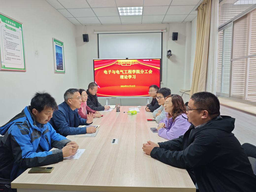 11月12日下午16时,按学校理论学习要求,电子与电气工程学院分工会在学院院士工作站召开理论学习会议。院工会委员、各工会小组长参加会议。会议由院工会主席耿建泽主持。