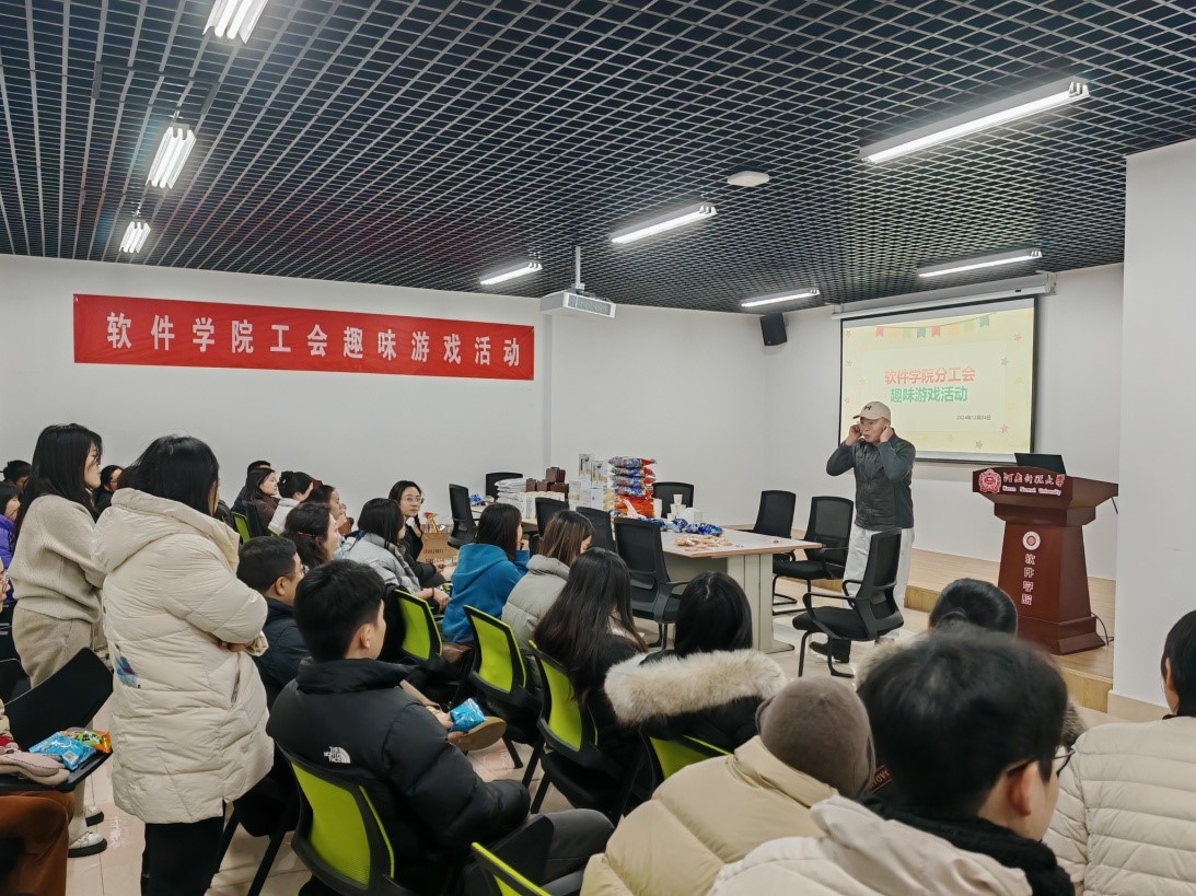 为丰富学院教职工的文体生活,缓解工作压力,增强团队凝聚力,12月24日下午,软件学院工会在实训楼413会议室开展教职工“脑力眼力齐上阵,趣味游戏大闯关”系列活动。本次活动由院工会委员王晓祥主持。学院领导和全体教职工参加了活动。
