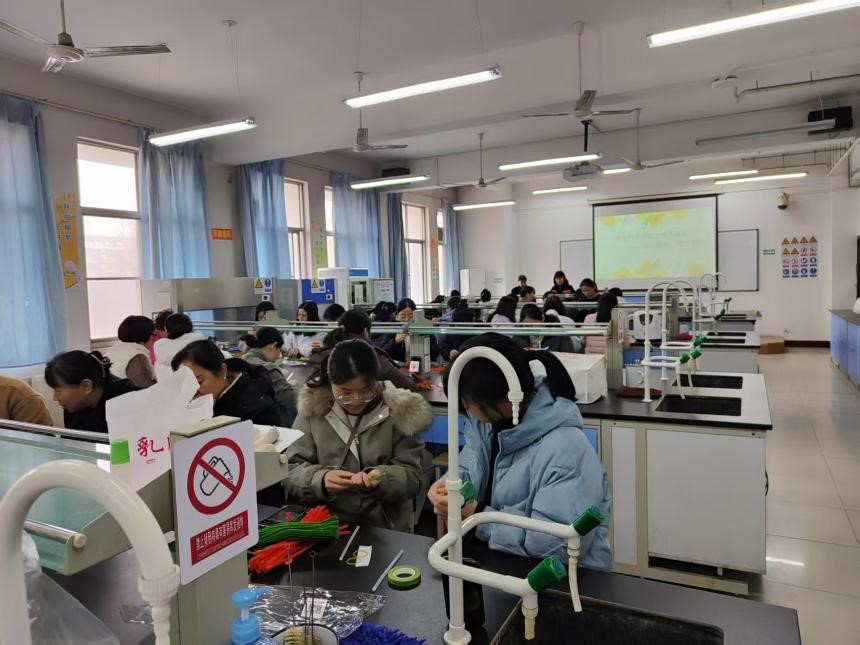 活动现场,各种制作材料摆放整齐有序,为女职工们提供了良好的创作环境。他们充分发挥创造力,巧手构思,一根根彩棒在她们的指尖跳跃,编织出一束束绚丽多彩的花束。活动过程中,老师们不时交流心得技巧,现场气氛融洽而温馨,每个人脸上都洋溢着轻松愉悦的笑容。这些亲手编织的花束,不仅象征着对美好时节与生活的热切追求,更寓意着老师们生活的“事事如意”和事业的“红红火火”。其中,一个个红彤彤的柿子形状装饰,如同小灯笼般映照出老师们美丽的笑颜,增添了节日的喜庆氛围。