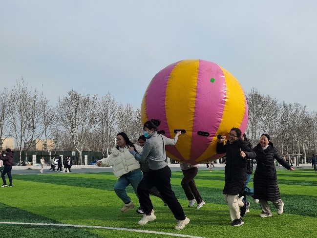 接着,我院女教师们在欢快的健身操热身后积极投身到活动项目中。他们不仅分组进行了毛毛虫趣味竞速运动,还参加了鸿运彩球运动。活动现场欢声笑语不断,老师们个个精神抖擞,尽情享受着运动带来的快乐。