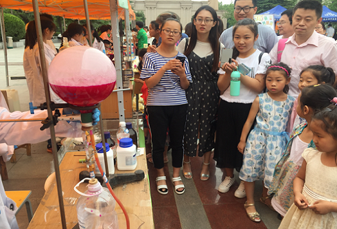 “魅力化学”科技文化推广日活动是“魅力化学”科技文化节系列活动的重要组成部分。整个科技文化节以“彰显化学之美,引领绿色生活”为主题,以“魅力化学,活力化院”为口号,先后历时一个月。自5月4日启动以来,相继开展了名师讲堂、“我与院长书记面对面”互动交流、“建功十三五,助力双一流”学院发展论坛、化学实验知识大赛和“一站到底”化学知识知多少竞答等一系列活动,集学术性、趣味性于一体,充分展示了化学的独特魅力和化学化工学院的良好形象,为全校师生奉上了一场炫目的化学科技盛宴。