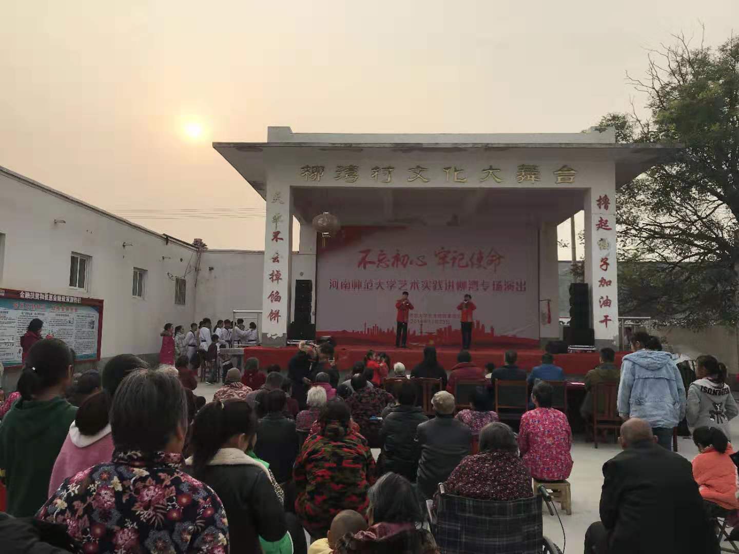 11月23日,我校“不忘初心、牢记使命”艺术实践专项演出在柳湾村举行,受到村民们的热烈欢迎。校艺术教育委员会组织师生走进田间地头,深入农民中间,以文艺演出的形式践行“不忘初心、牢记使命”。