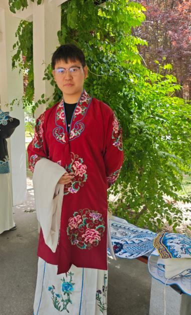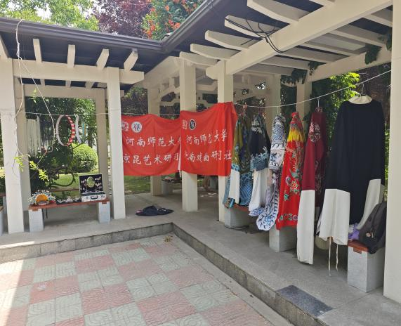 2025年5月18日上午,阳光明媚的河南师范大学西区中心花园内,陈列着一件件精美的戏曲服饰,京昆艺术研习社与河南戏曲研习社联合举办“戏曲知多少”活动,通过给同学们讲解戏曲知识并让同学们试穿戏曲服饰,展现戏曲的魅力。