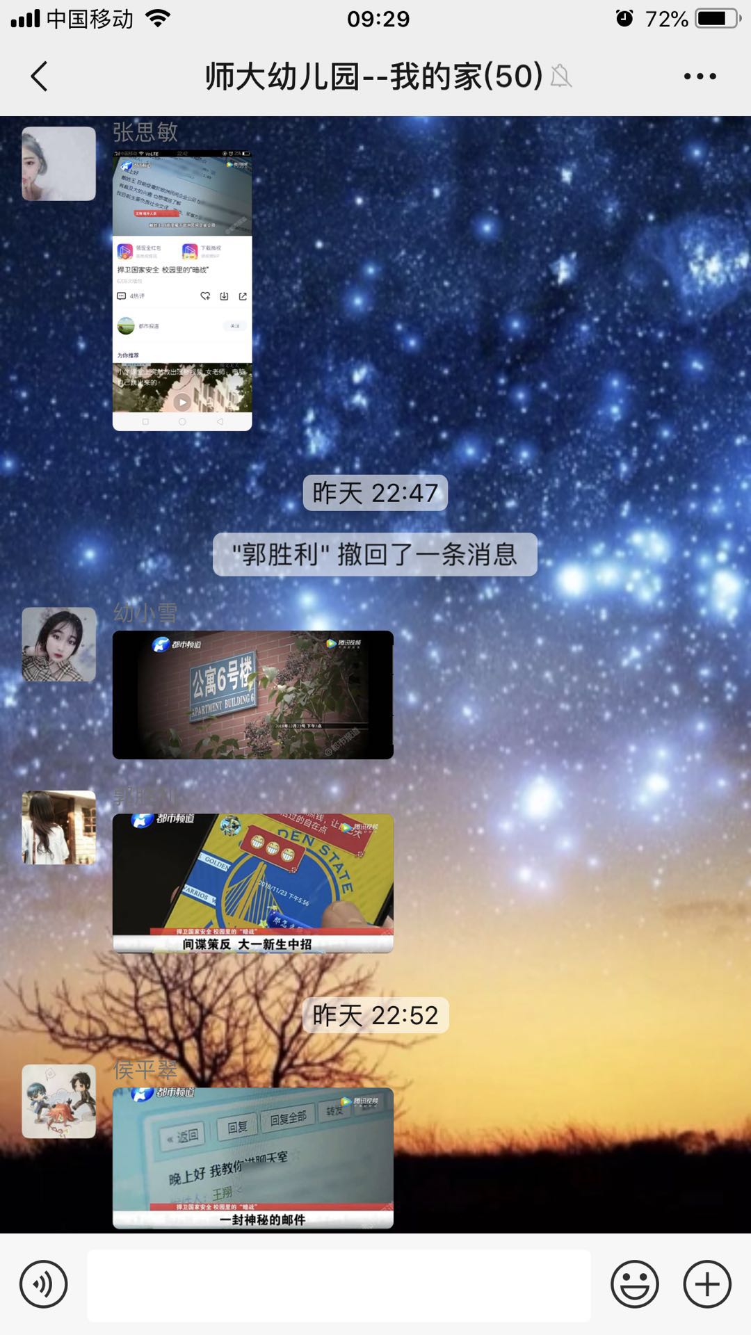 按照校党委宣传部要求,4月16日上午,幼儿园党支部及时给全体教职工发布了观看视频通知,要求大家按照节目播出时间,收看河南省国家安全厅制作的《捍卫国家安全校园里的“暗战”》专题片。