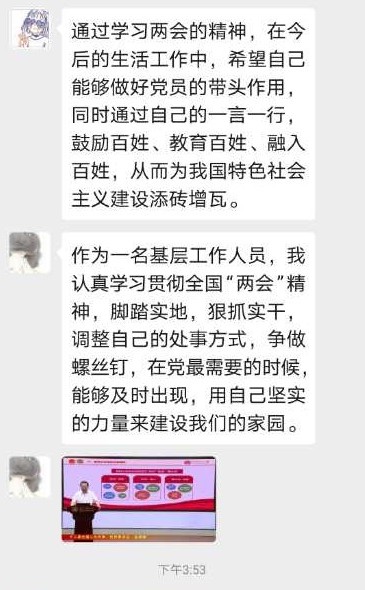 全体职工收看过后积极展开线上讨论,大家纷纷表示要认真落实两会精神,“不忘初心、牢记使命”, 立足本职,紧紧围绕立德树人这一根本任务,以儿童至上,求实进取,为推进中国学前教育发展贡献自己的力量!
