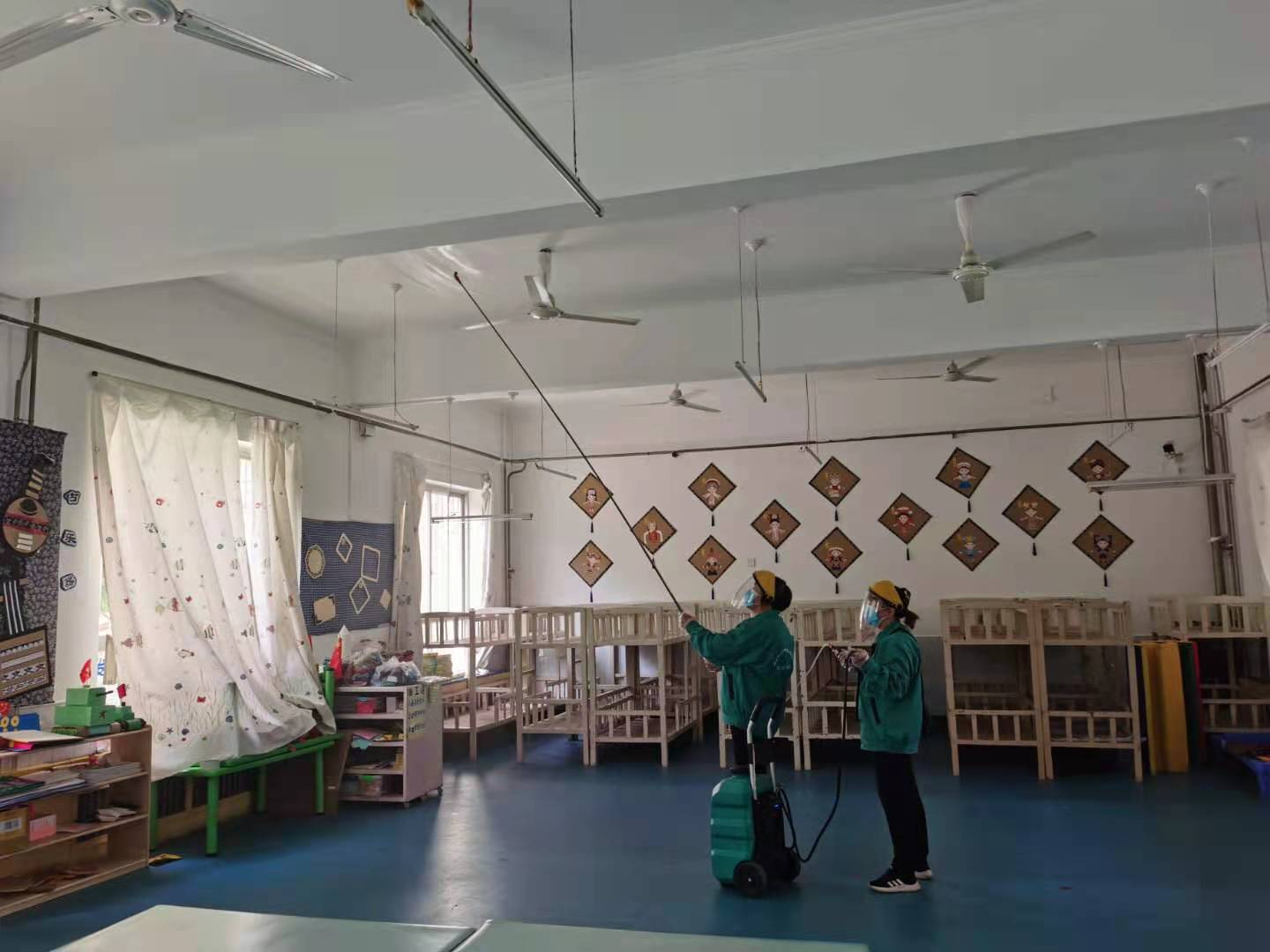 随气温不断升高,气候越来越适宜蚊蝇滋生繁殖,为了进一步降低幼儿园蚊蝇密度,减少蚊蝇传播疾病的概率,有效预防传染疾病,切实保障幼儿身体健康。5月22日上午,幼儿园安排新乡市一帆有害生物防治有限公司的专业工作人员对厨房、班级、办公室、户外绿化进行灭蚊虫消杀工作,为幼儿营造了一个安全舒适的学习、生活环境。