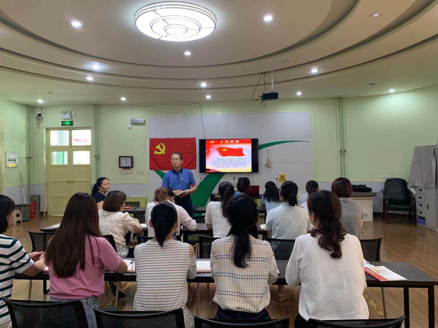 党支部书记郭玉梅首先做了题为《教育报国 不忘初心》的专题党课,她结合幼儿教师职业特点,以中国著名儿童教育家、儿童心理学家、教授,中国现代幼儿教育的奠基人陈鹤琴为切入点,从他个人生平、研究实践和影响深远的“活教育”思想体系,详细讲述了陈鹤琴教授对新中国学前教育发展史的贡献。再次深入理解学史明理、学史崇德、学史增信、学史力行的深刻含义,紧密结合习近平在“七一勋章”颁奖大会上的讲话精神,号召全体党员要时刻牢记历史使命,坚定理想信念,拼搏奉献,要知重负重,以陈鹤琴教育思想和教育实践为榜样,把学前教育做得更广泛、更扎实、更有质量。党课结束后,郭玉梅带领大家进行了重温入党誓词。