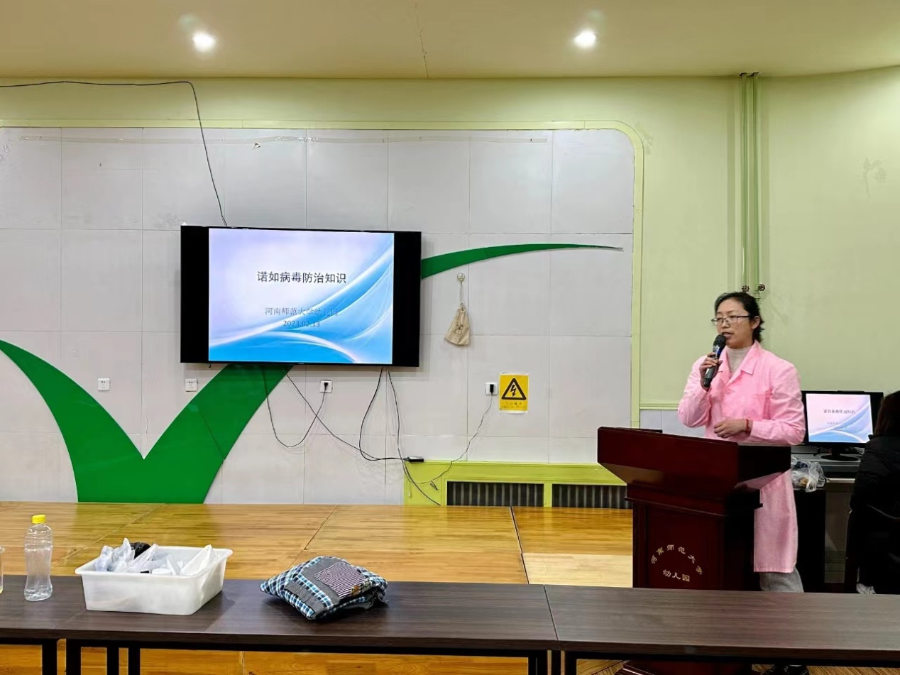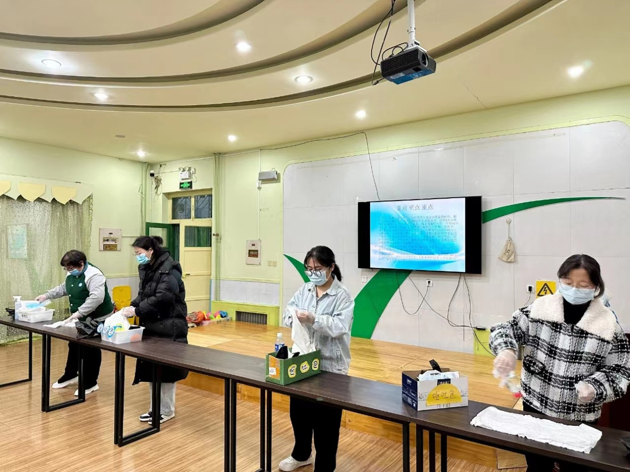 《幼儿园教育指导纲要》明确指出:“教师应该把保护幼儿的生命和促进幼儿的健康放在教育工作的首要位置”,卫生保健是幼儿园工作的重要组成部分,为进一步加强和预防春季诺如病毒肠道传染的防控工作,提高教职工对传染病防控的认识,我园于2月13日下午开展了主题为“诺如病毒感染预防及呕吐物处置实操”的专题学习。