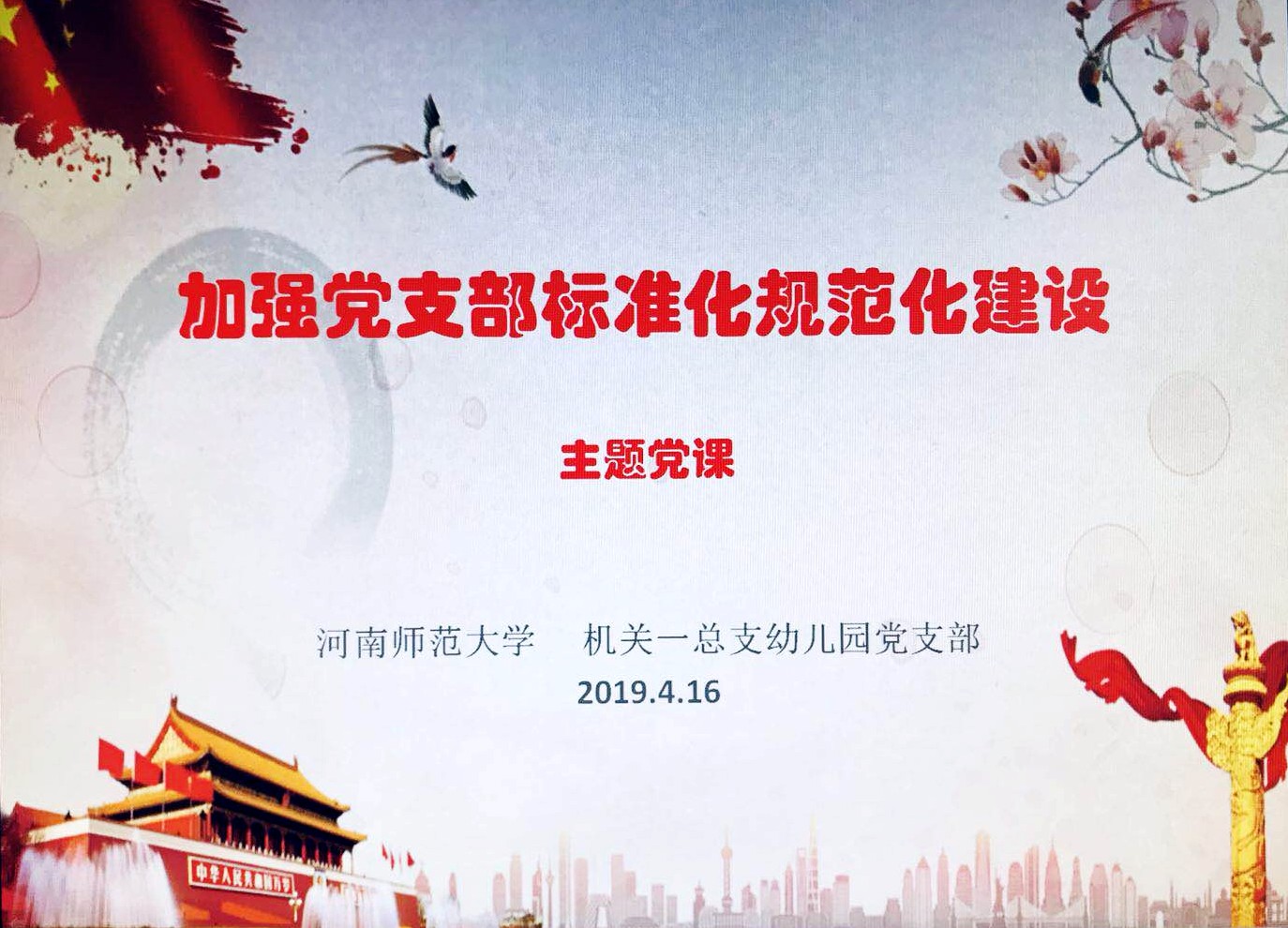 接到校党委《关于在全校开展“加强党支部标准化规范化建设”主题党日活动的 通知》后,4月16上午,幼儿园党支部及时召开了支委会,认真分析了通知要求,积极探讨本次主题党日活动内容和组织形式,最终确定开展互动式主题党课。
