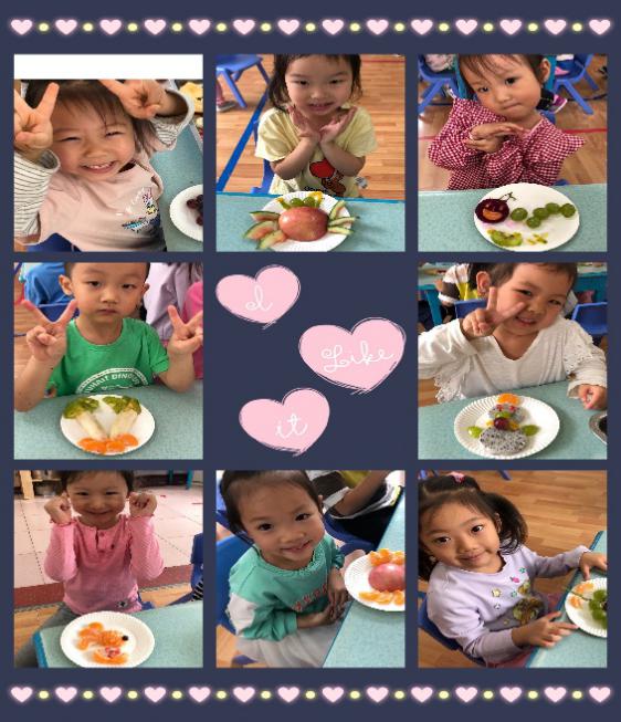 参与是一种快乐,创造是一种享受,合作是一种幸福。老师引导幼儿大胆想象、创作,幼儿亲自动手做出来不同造型的水果拼盘,提高了幼儿的动脑、动手操作能力和想象创造力,每个孩子都很有兴趣,非常积极投入,感受着节日带来的快乐。本活动以“团圆”为主题,一起品月、一起做创意水果拼盘,让幼儿体验幼儿园这个大家庭的团圆与快乐,感受我们中华民族的传统节日--中秋节。