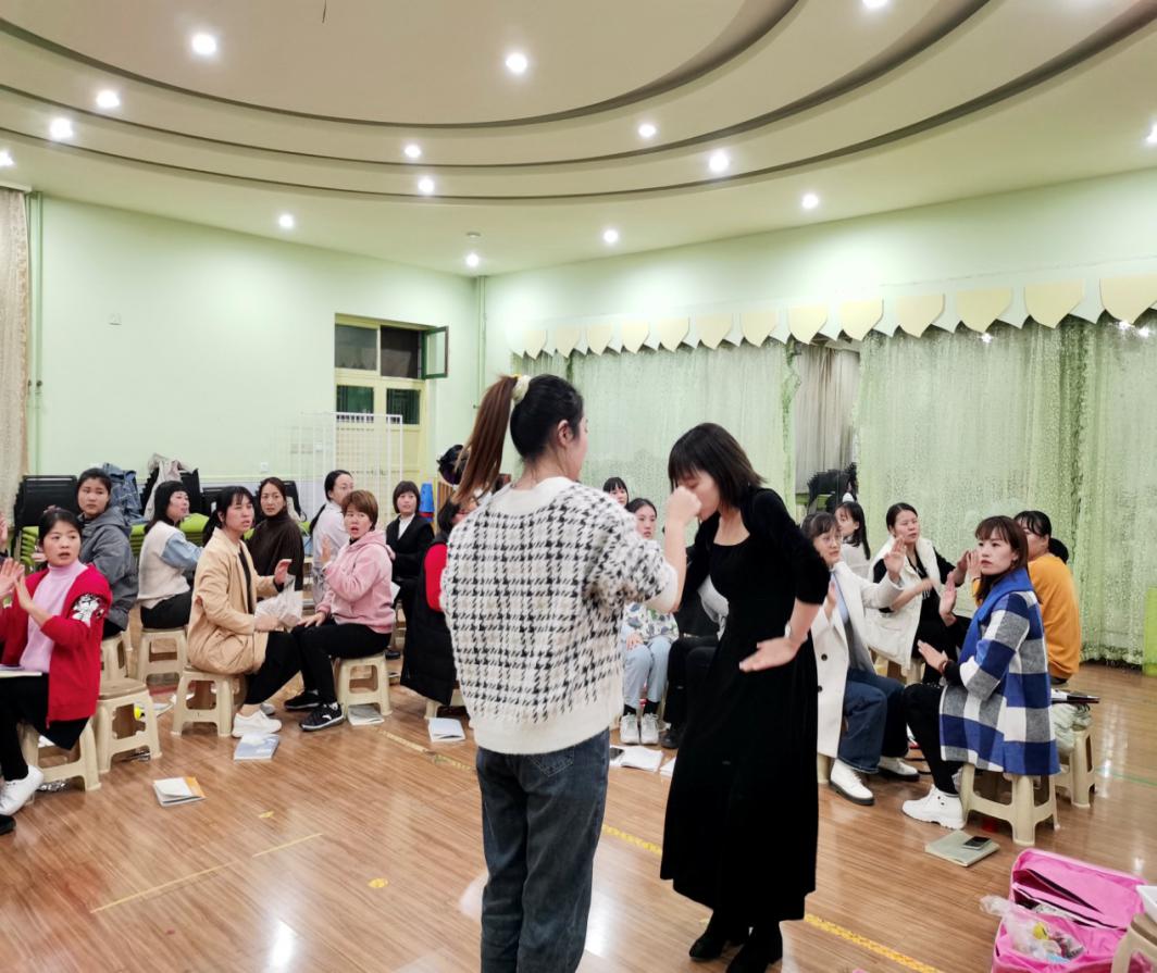 第二部分为实操体验学习。汪老师组织老师们现场实操打击乐,在体验中明白乐曲风格、各种乐器的正确使用方法以及打击乐器的音乐表现特点。老师们积极学习的态度和愉快的培训气氛充满整个教室。