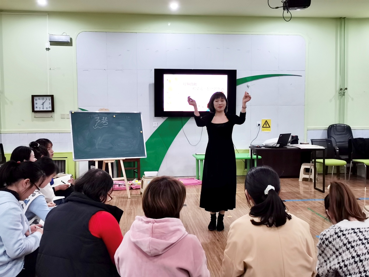 为了提高教师音乐素养,提升打击乐活动的整体教学水平,我园特邀武汉亿童文教股份有限公司的汪满老师于11月6号下午在音体室进行了关于幼儿园打击乐教学方面的专题培训。全体一线保教人员30余人参加了此次培训,培训活动由业务园长宋君霞主持。