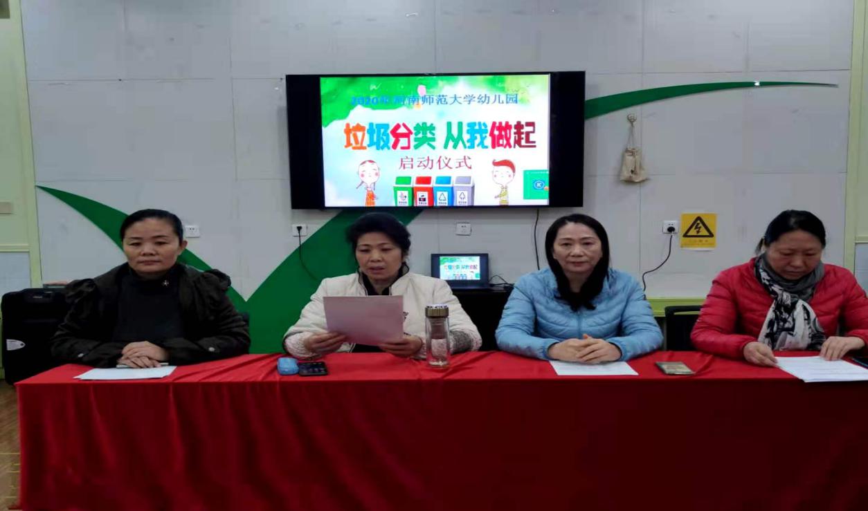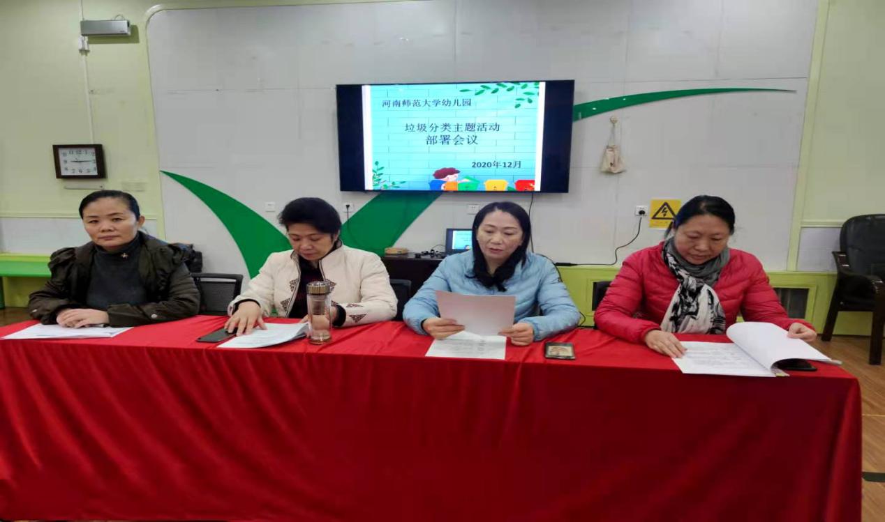 2020年12月2日上午,河南师范大学幼儿园在音体室举行“垃圾分类 从我做起”启动仪式。幼儿园党政班子、行政人员、各班班主任、厨房师傅、保洁师傅、门岗师傅及保安师傅共同参加了此次会议。