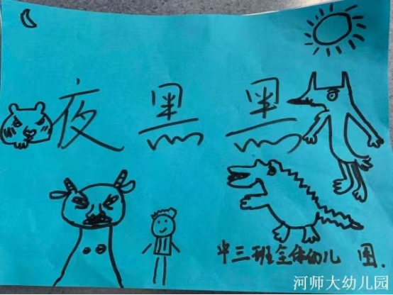 孩子们在老师的引导下,通过“画、剪、贴”等多种方式,以手绘图,通过交流合作、默契配合,共同完成绘本,一起感受着绘本制作的乐趣。