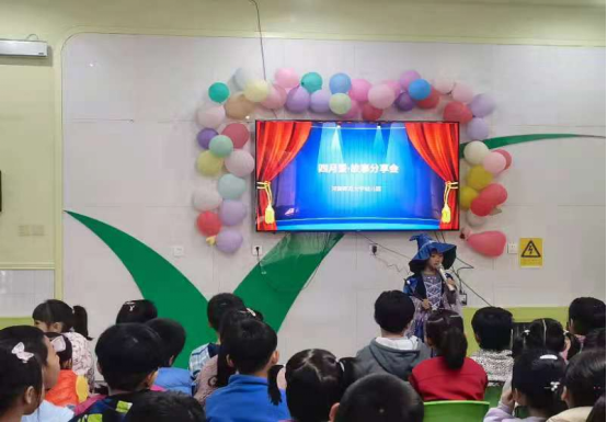 孩子们在班级参加故事比赛后,每个班级又选出五名小朋友,为全年级孩子展示,进行了故事分享会。他们利用丰富的肢体语言,将故事讲得绘声绘色,讲述过程中,语言清晰、标准,讲述流畅,声音响亮