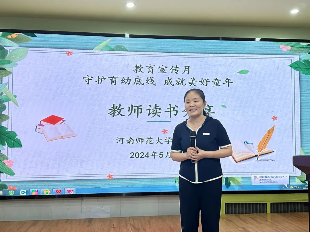 分享结束后,常园长进行了总结。她充分肯定老师们在读书中的收获,对老师们结合各自的教学实际谈到的成长与进步感到欣慰,她希望通过本次活动激发教师的阅读热情,促进教师之间的分享交流,传递出教书育人的正能量,共同守护育幼底线,成就美好童年。