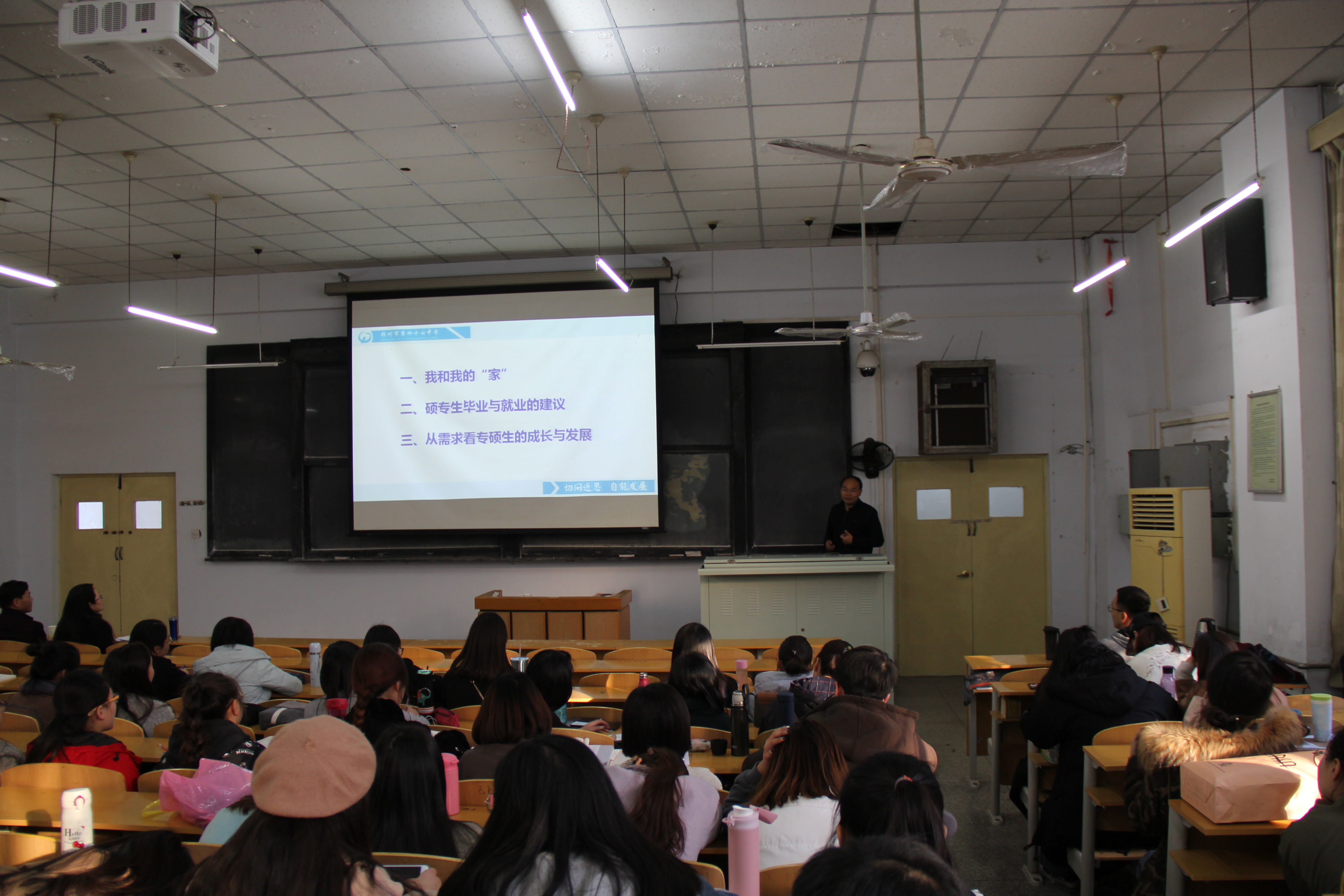栗红涛副校长此次讲座的题目是《放飞心中的梦·成就瞩目的你》。他从中学发展的教师需求与专硕生就业成长的感悟两方面给同学们上了一堂生动的就业指导课。栗老师以自己的学生时代为引,拉开了此次讲座的序幕。他指出现在中学需求的是具有大格局、正能量、讲原则、能力强、读书多、善合作、好身体的综合性人才。基于这一标准,给同学们提出了一些建议:一是明确就业方向,不同的方向成就不同的人生。二是做好就业规划,一份完备的纲领可以更好地指导实践。三是了解中学教师的需求趋势,知己知彼,方能百战不殆。最后,他勉励同学们放飞梦想,书写属于自己的人生篇章。