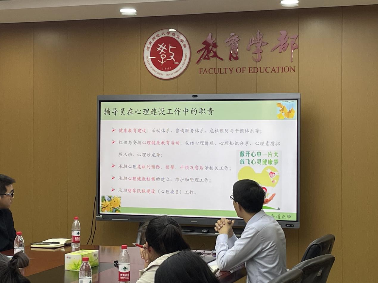 教育学部党委副书记康淑霞根据自己多年的学生工作经验进行了分享交流。康书记讲到,研究生群体的人员类型多样,情况复杂。学生工作要从“心到、耳到、眼到、口到、脚到”几个维度展开。要全面统筹开展立德树人工作,更要时时留心,主动谋划学生的身心安全教育工作。