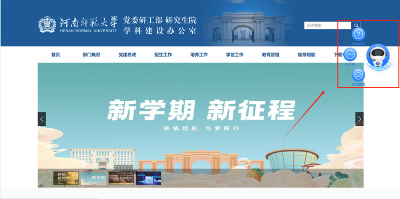 登录河南师范大学研究生院招生官网(网址:https://m.dukatu.com/yjsxy/main.htm),点击右侧“智能机器人小E,在登录界面完善基础信息后即可在线咨询或留言。(操作详情见下图)