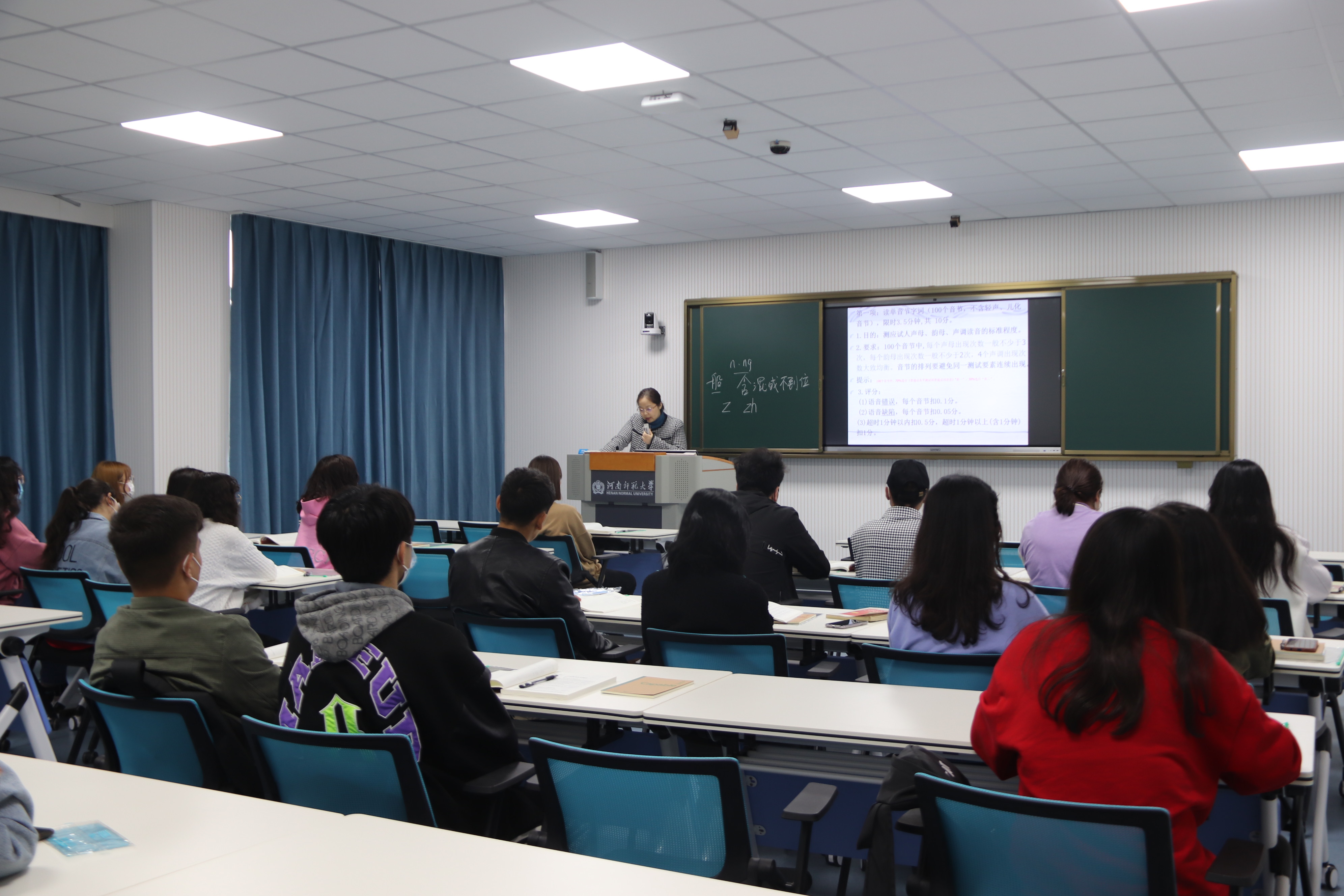 为帮助同学们提升普通话应测能力,提高普通话水平测试通过率,校语委于2022年3月29日下午在田家炳309微格教室开展了普通话水平测试考前辅导。学生处学生管理科阿热孜古丽老师、3名新疆内派委培教师和部分边疆少数民族地区同学参加了辅导。校语委向同学们借阅了《全新版普通话水平测试专用教材》,并向同学们赠送了笔记本等学习用品,鼓励同学们“讲普通话、写规范字”。语言文字培训管理科科长王兰兰老师结合专用教材针对单音节字词、多音节词语和短文朗读等内容进行了讲解和答疑,深得与会师生的好评。