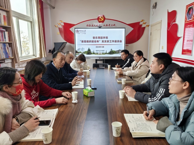 12月14日上午,学院在院五楼人民文艺工作坊召开“基层组织建设年”党支部工作座谈会。学院各党支部书记参加会议。