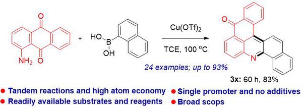 Wu, H.; Zhang, Z.;* Ma, N.; Liu, Q.; Liu, T.; Zhang, G.* Synthesis of Acridines from o-Aminoaryl Ketones and Arylboronic Acids by Copper Trifluoroacetate-Mediated Relay Reactions. J. Org. Chem. 2018, 83, 12880-12886 (Highlight by SYNFACTS, Synfacts, 2015, 115, 287). https://doi.org/10.1021/acs.joc.8b01828