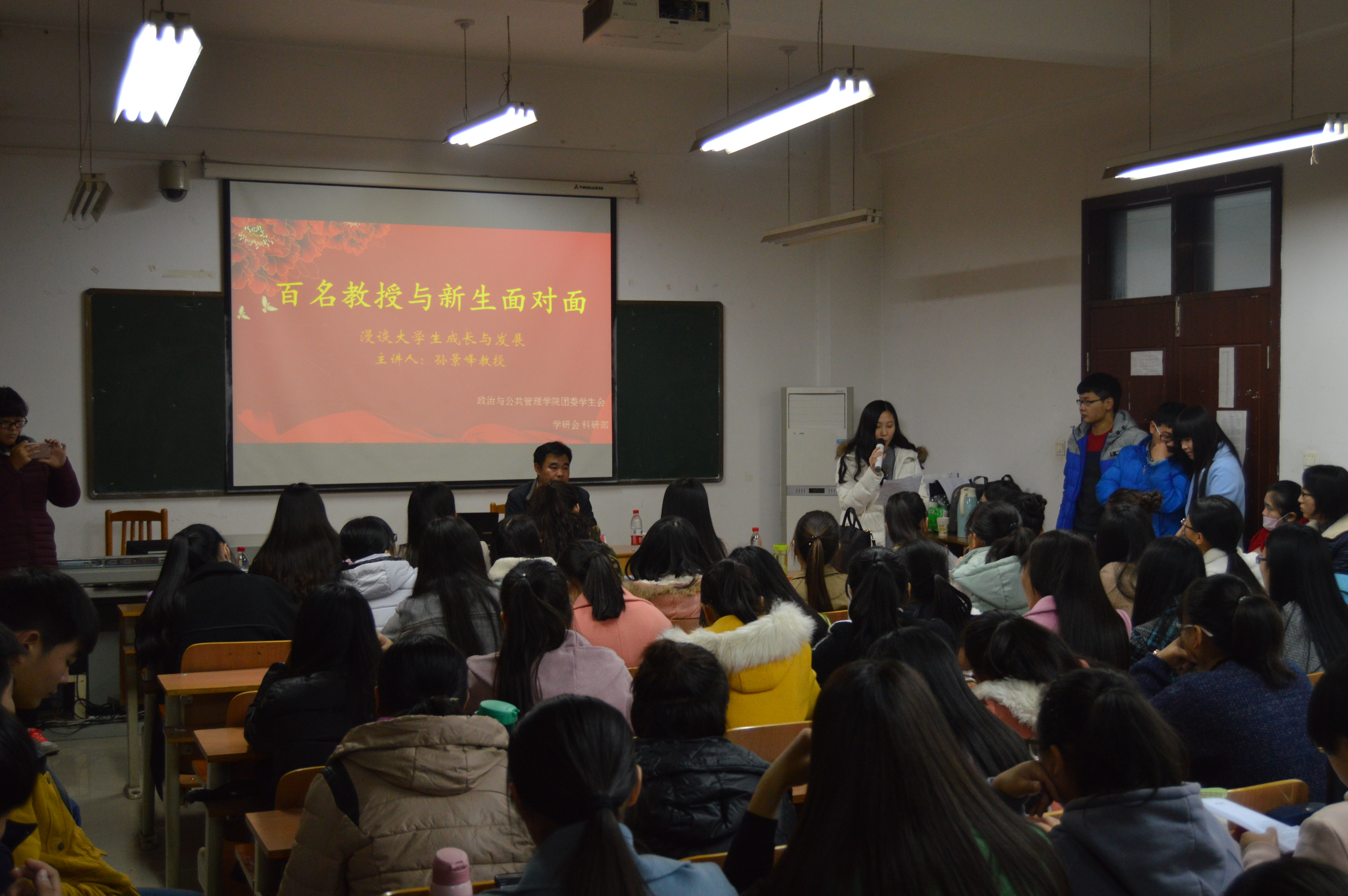 为帮助学生合理规划大学生活,11月13日晚,政治与公共管理学院在政管楼217联合举办了以“漫谈大学生成长与发展”为主题的讲座,学院副院长孙景峰应邀担任讲座主讲人,团委学生会部分成员及2016级部分新生共同聆听了本次讲座。讲座由2016级辅导员王卉主持。