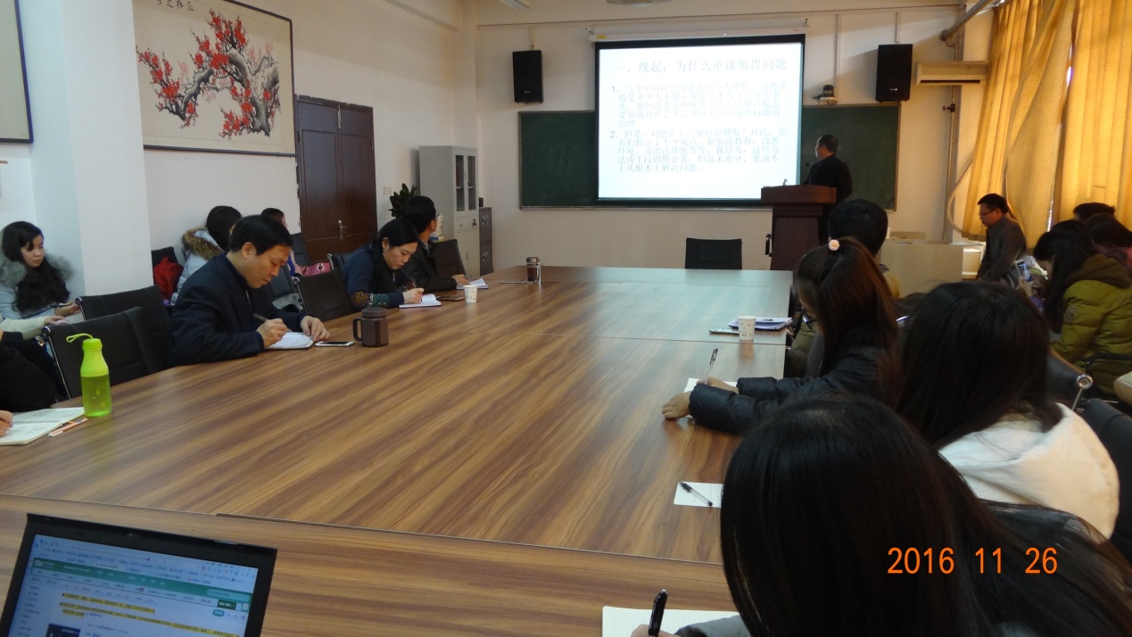 2016年11月26日下午3点,应河南师范大学政治与管理学院邀请,湖南师范大学邓名瑛教授围绕《如何保持敬畏之心》的主题作了专题讲座。本次讲座由刘英基副院长主持,学院领导、教师、研究生以及实验班本科生聆听了讲座。