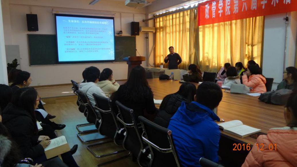 12月1日下午1点,河南师范大学政治与公共管理学院韩万渠老师在政管楼517做《关于如何选题、论文常见研究方法以及研究中存在的问题》的学术报告。政治与公共管理学院研究生和实验班部分学生聆听了本次讲座。