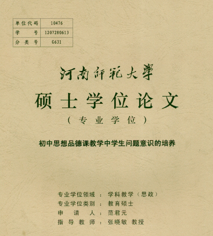 3月2日,接全国教育专业学位研究生教育指导委员会,关于全国第五届优秀教育硕士专业学位论文评审决定工作的通知,在我院张晓敏教授的指导下,范君元同学的学位论文《初中思想品德课教学中学生问题意识的培养》被评为全国第五届教育硕士专业学位优秀论文。