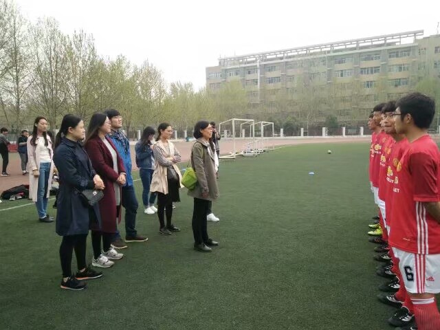 驰骋绿茵,激情碰撞。4月7日中午,政治与公共管理学院团委负责人张蔚、2014级辅导员郝如意、张成功、2015级辅导员李娇、2016级辅导员郭鹏、王卉及团委学生会部分成员共赴西区操场慰问"雄风杯"足球赛运动员。