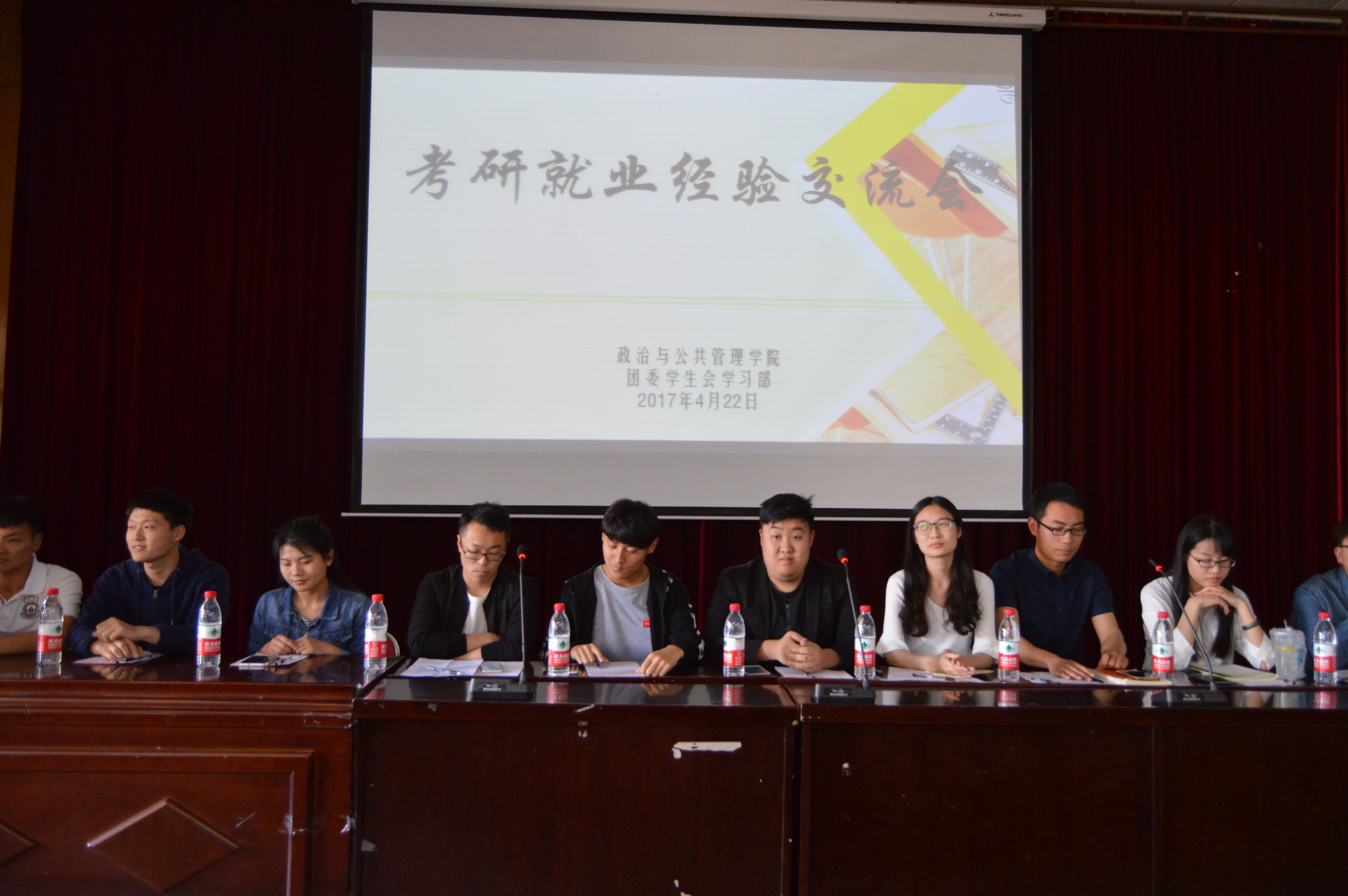 4月22日下午,政治与公共管理学院团委学生会学习部在校多功能报告厅举办了考研就业经验交流会。2014级辅导员老师张成功出席交流会现场。