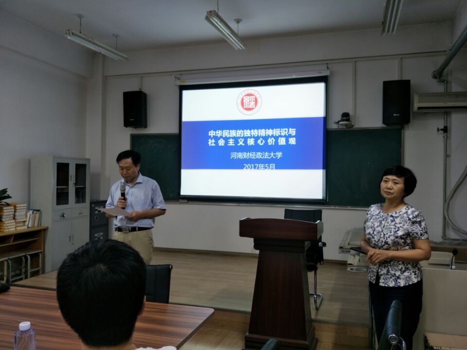 2017年5月26日晚上八点,应河南师范大学政治与管理学院邀请,河南财经政法大学朱金瑞教授以《中华民族的独特精神标识与社会主义核心价值观》为题作了专题讲座。本次讲座由李洪河院长主持,学院领导、教师、研究生和本科生聆听了讲座。
