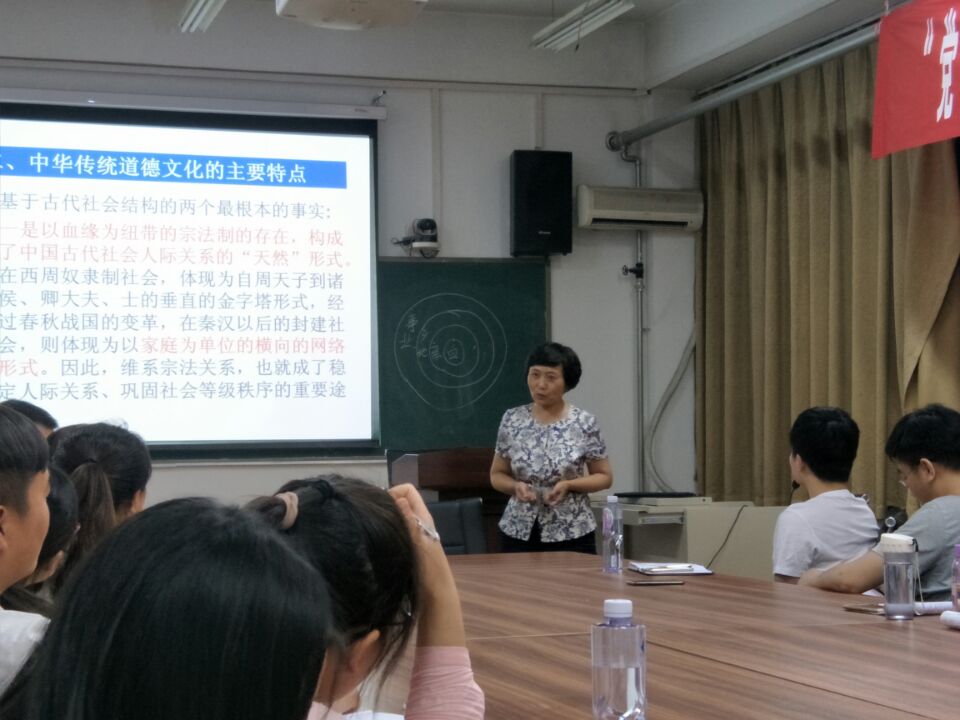 朱金瑞教授以《中华民族的独特精神标识与社会主义核心价值观》为题,从中华传统文化的精神标识、中华传统文化的主要特点以及传统美德与社会主义核心价值观三个方面作了深入讲解。首先,朱金瑞教授从哲学、经济、政治、伦理、道德修养五个维度对中华传统文化做了详细分析,阐释了中华传统文化的精神标识,总结了中华传统文化的六大特点即爱有差等、天人合一、德性主义人性论、“正其义不谋其利,明其道不计其功”的道义论、道德与政治的一体化、发达的道德修养和道德教育理论。其次,朱金瑞教授强调,中华民族优秀的传统文化是社会主义核心价值观之根、之魂。最后,朱教授告诫我们:必须传承中华民族优秀传统文化,践行社会主义核心价值观,增强文化自信。朱金瑞教授对中华优秀传统文化的热爱与传承感染着在座的每一位师生。