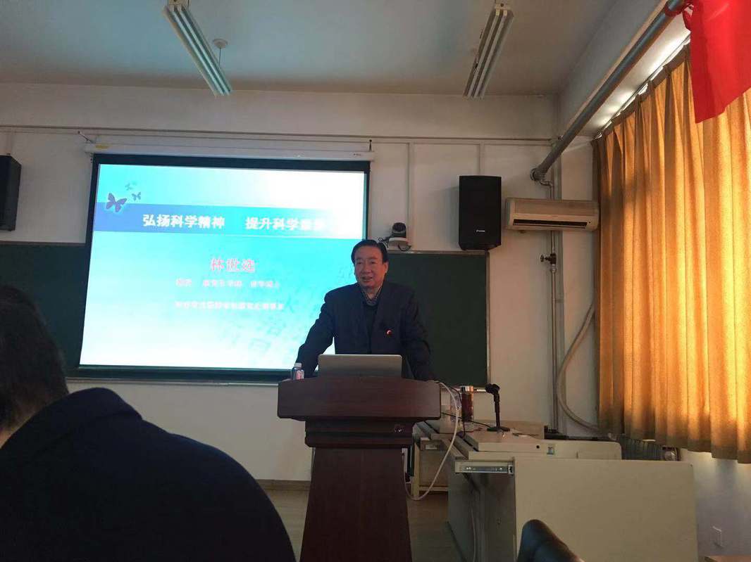 2018年11月15号上午9点,林世选教授应政治与公共管理学院邀请,在政管楼517会议室为学院师生做了一场题为《弘扬科学精神,提升科学素质》的学术报告。报告由政治与公共管理学院院长李洪河教授主持,参加讲座的有政治与公共管理学院部分教师、研究生、以及部分本科生。