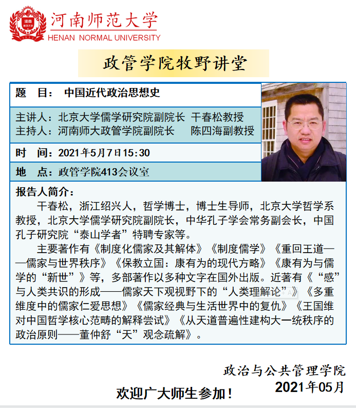 Copyright © 2021 | 河南省新乡市建设东路46号 河南师范大学政治与公共管理学院 |0373-3325967 |邮箱:zgwangzhan@126.com