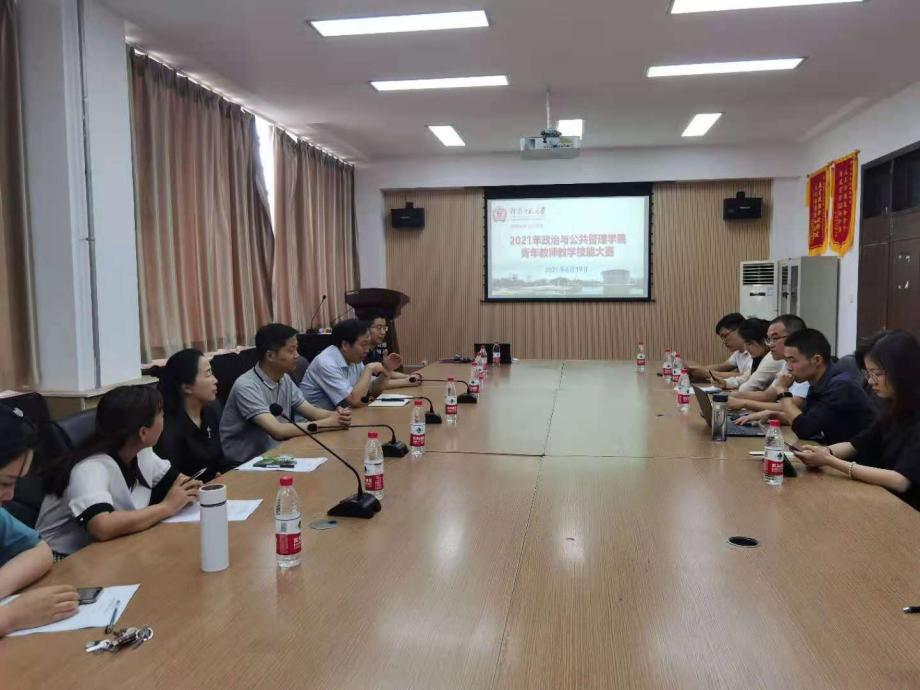 6月19日,政治与公共管理学院在学院413举办2021年度青年教师教学技能大赛。学院八位青年教师参赛,并邀请了三位资深教学名师担任评委,书记段红伟、院长李洪河、副院长王鹤亭出席并讲话。学院部分教师和学生观摩了比赛。