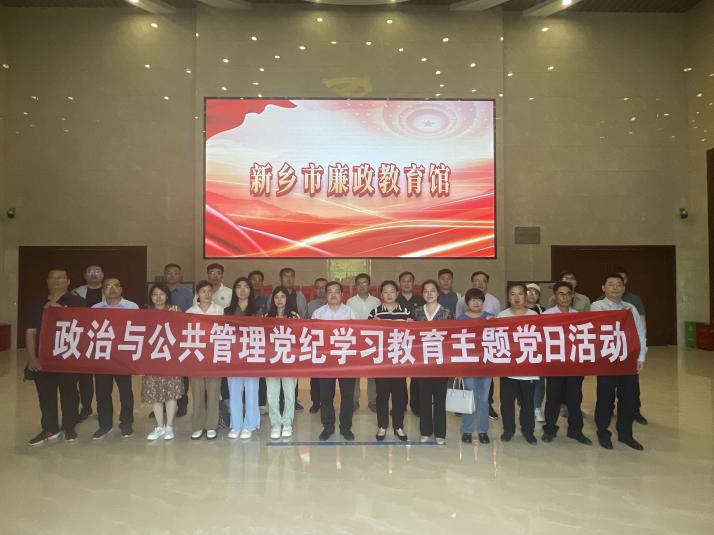 为深入开展党纪学习教育,教育引导党员干部从思想上正心修身、固本培元,提高党性觉悟,增强拒腐防变能力。5月13日上午,政治与公共管理学院党委赴新乡市廉政教育馆开展党纪学习教育主题党日活动。学院全体党委委员、党支部书记、党员教师参加活动。