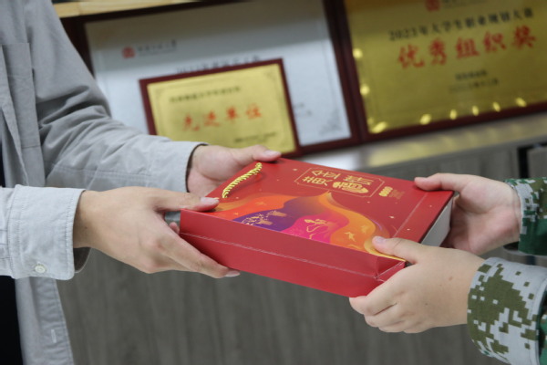 在军训场地,张瑾向学生阐释军训的重要意义并勉励学生在军训期间听从指挥,坚持锻炼,不掉队、不离队,磨练个人意志力,形成不怕苦、不怕累的精神品质,并建议学生学会劳逸结合,根据时间合理安排个人事务。随后,王鸿飞提倡新生在军训期间发扬学院学生互帮互助、团结友爱的优良品德,与他人结下深情厚谊,共同度过美好的大学时光。之后学院领导在学院楼120室现场为每个宿舍分发师大文创月饼,并为学生送上中秋祝福,展现了学院对学生的关怀和爱护。慰问结束后,学生纷纷表示,学院领导的关怀如暖阳,让自己深切感受到学院的人文关怀精神,同时自己也将更加珍惜军训时光,以崭新的面貌迎接大学生活。