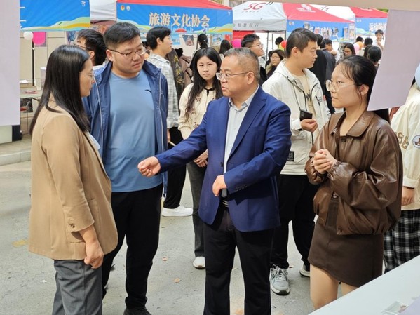 为加强校园文化建设,进一步帮助新生了解社团活动,促进学生综合发展,10月13日至14日,学院国际关系协会与模拟政协协会参与以“青春共筑家国梦,百团汇聚正当时”为主题的社团招新活动。校党委常委、副校长聂国兴,校团委书记马二杰与社团成员亲切交流并给予指导。