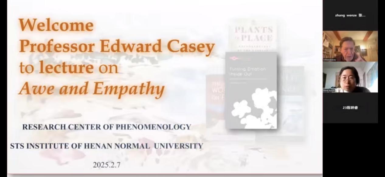 2月7日上午,应政治与公共管理学院邀请,美国纽约州立大学石溪分校爱德华·凯西教授在线上为学院师生作了题为《敬畏与共情(Awe and Empathy)》的学术报告。学院相关专业的教师、研究生和本科生参加。报告由哲学系王海琴教授主持,