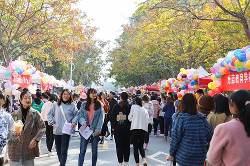 10月24日至10月25日,由校团委、校学生社团联合会主办的“百团大战”学生社团招新活动在万人餐厅外主干道举行,我校近百个学生社团竞相亮出“看家本领”,各个社团摊位前人声鼎沸。